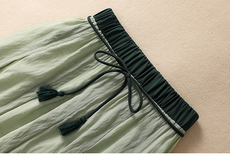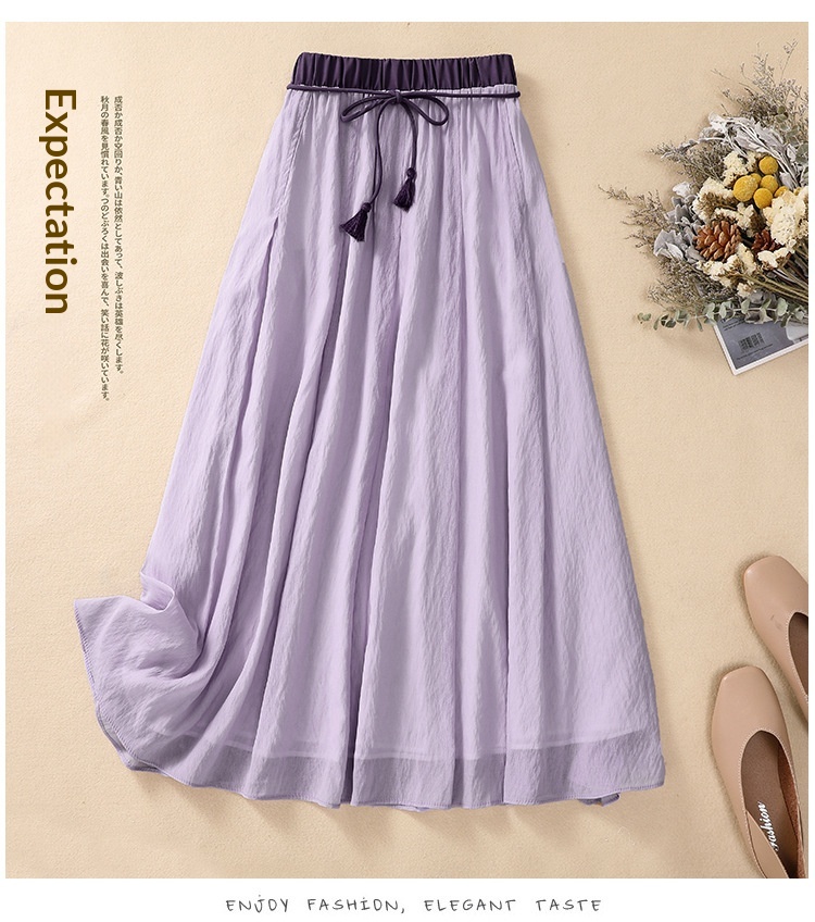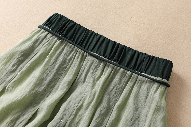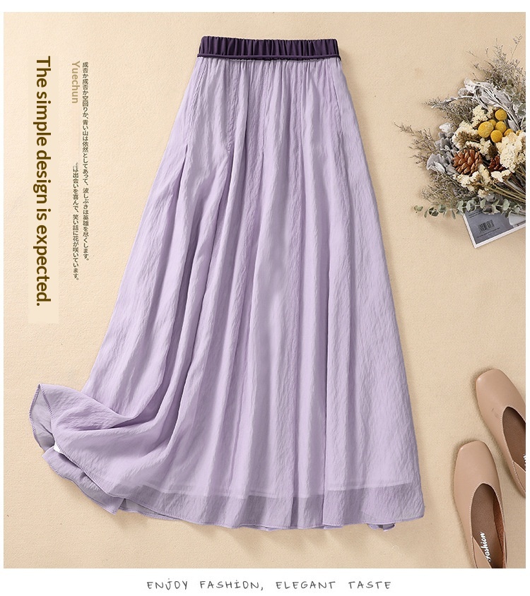 Solid-color Elastic-waist A-line Midi Skirt